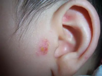 在耳朵相应的穴位敷贴压丸的一种疗法,可持续刺激穴位,通常可选用“王不留行籽”。