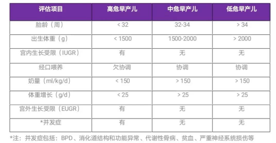 1.早产儿出院时分类:决定早产儿出院后不同的喂养方案和管理。对照表格对应我们的宝宝需要按哪类早产儿随访。