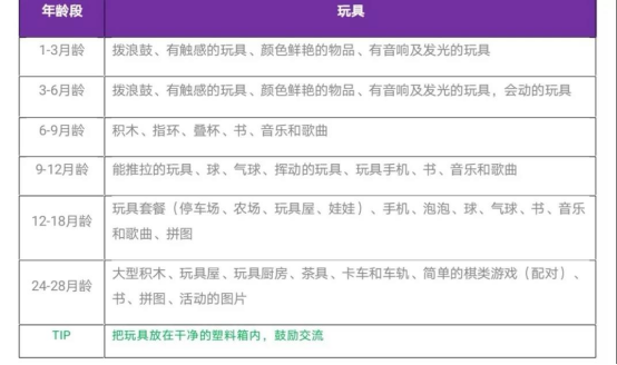 8.婴幼儿日常活动(早产儿按矫正月龄安排):宝宝每天日常活动根据下列表格进行安排,尽量诱导宝宝主动运动,少一些被动运动。