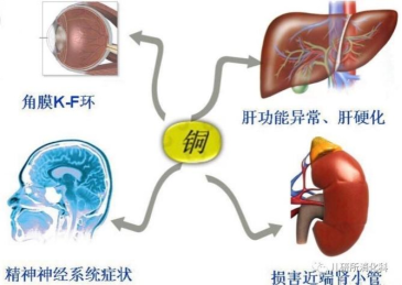 肝豆状核变性是常染色体隐性遗传的细胞内铜输出缺陷,铜自胆汁中排泄减少,导致铜的沉积,最初在肝脏,随后沉积于其他组织,尤其是脑。组织中铜沉积会引起肝脏、神经系统、血液系统及肾脏受损的很多症状和体征。