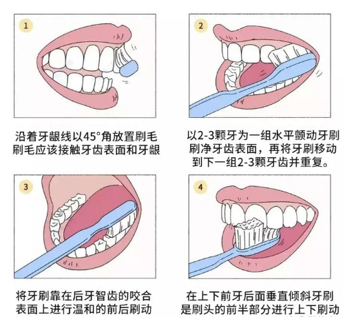 选择保健牙刷和适宜的牙膏。每天早晚刷牙,如果有条件,每顿饭后刷牙。选择正确的刷牙方法,即巴氏刷牙方法。同时建议老年人应长期使用含氟牙膏,牙齿敏感者选用脱敏牙膏。