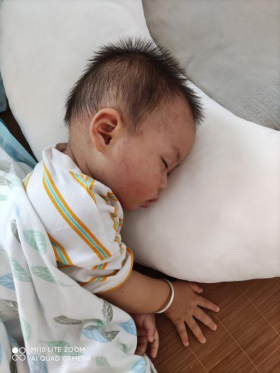 为什么辰辰会持续高热这么久呢?第五天,辰辰终于退烧了,随之颜面部出现了玫瑰疹,我悬着的心终于放下来了,原来这一切是幼儿急疹惹的祸。
