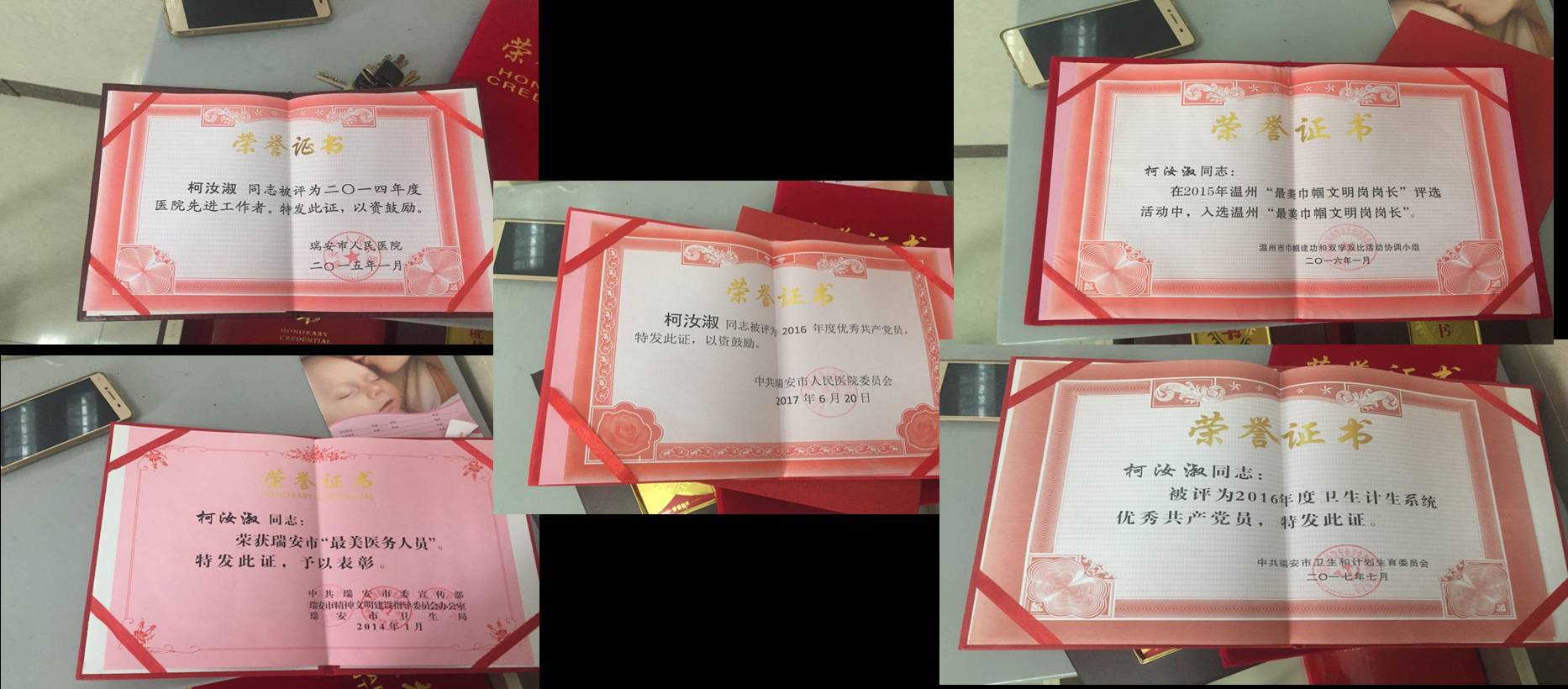 3、柯汝淑2015年度获得温州市巾帼文明示范最美岗长称号。